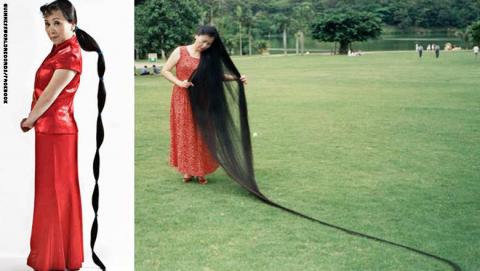ويتعلق الأمر بسيدة صينية من مواليد 1960 دأبت على إطالة شعرها منذ عام 1973 عندما كانت في الثالثة عشرة من العمر. وبلغ طول الشعر 5.632 مترا.